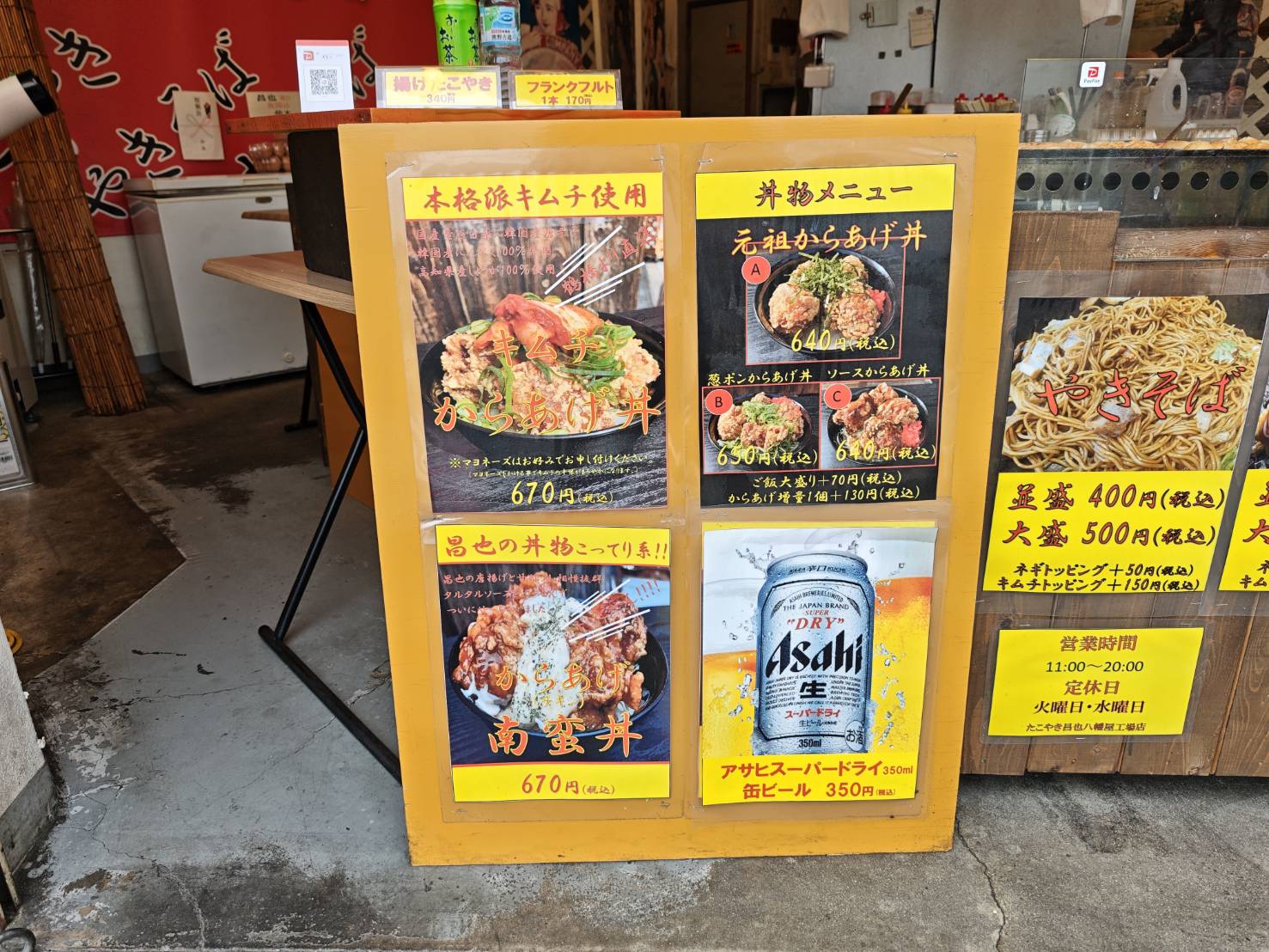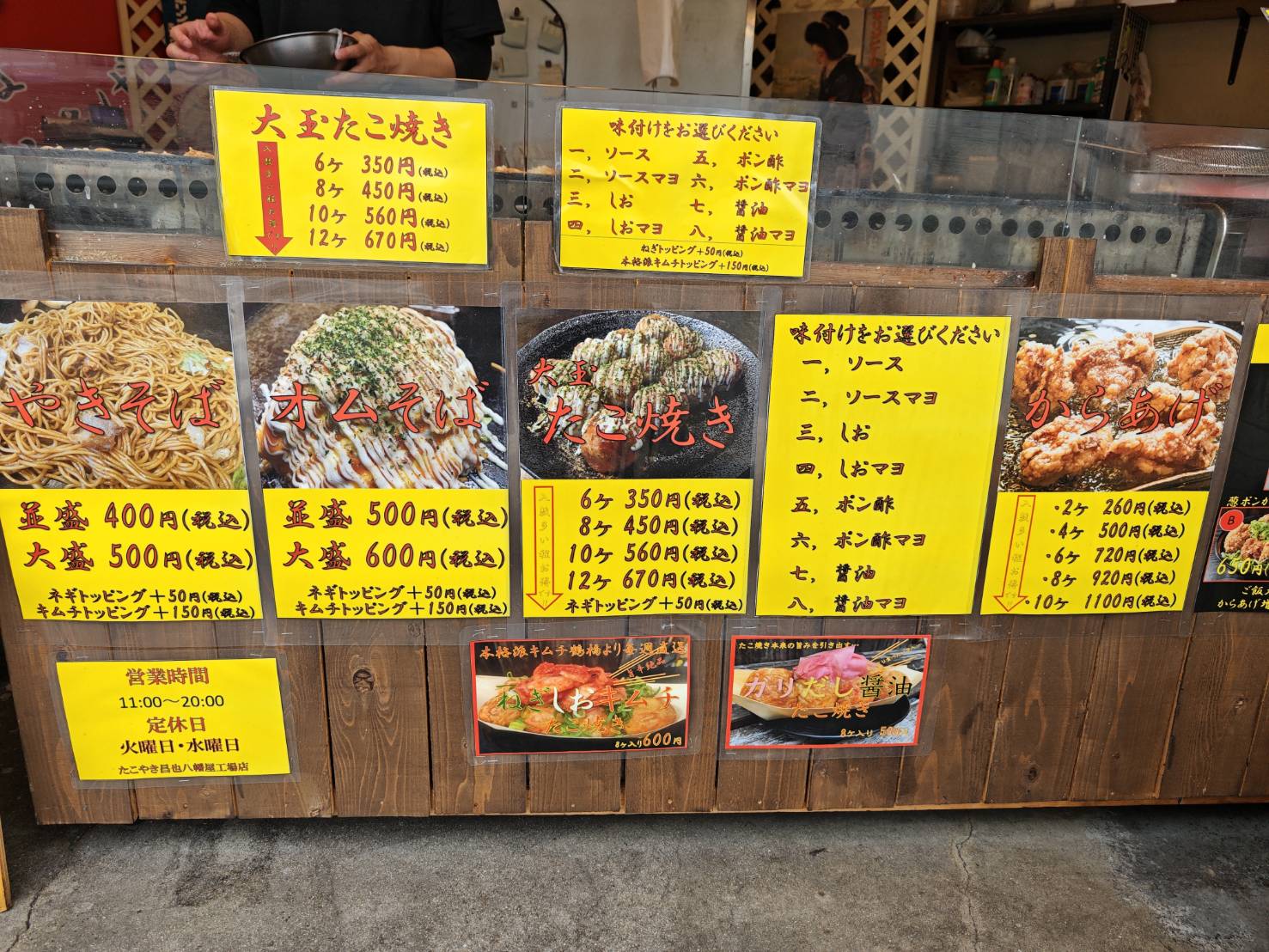 焼きそば、オムそば、たこ焼きに唐揚げの単品もあります。