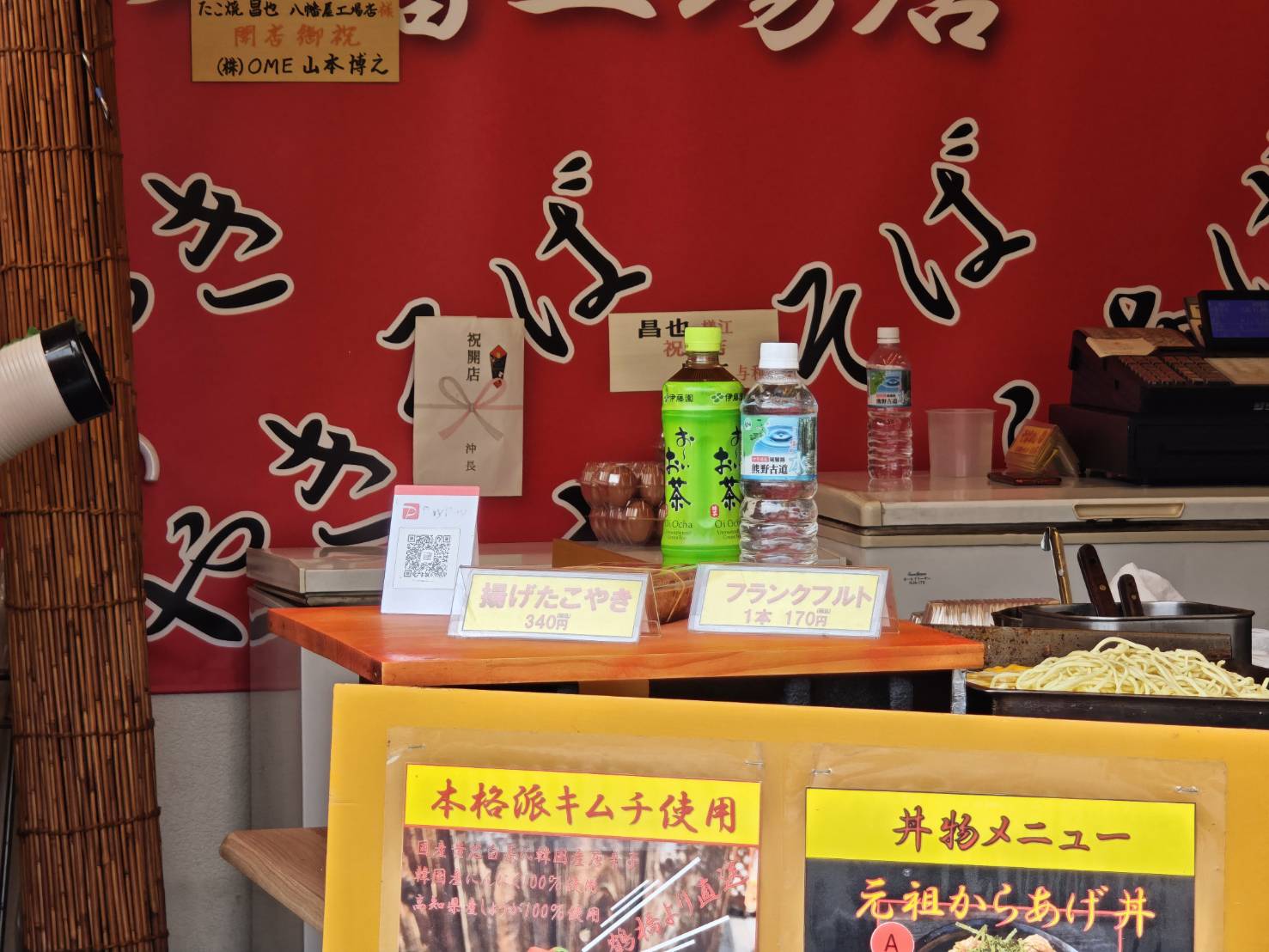 1品で揚げたこ焼きとフランクフルト、ドリンクの販売もされています。