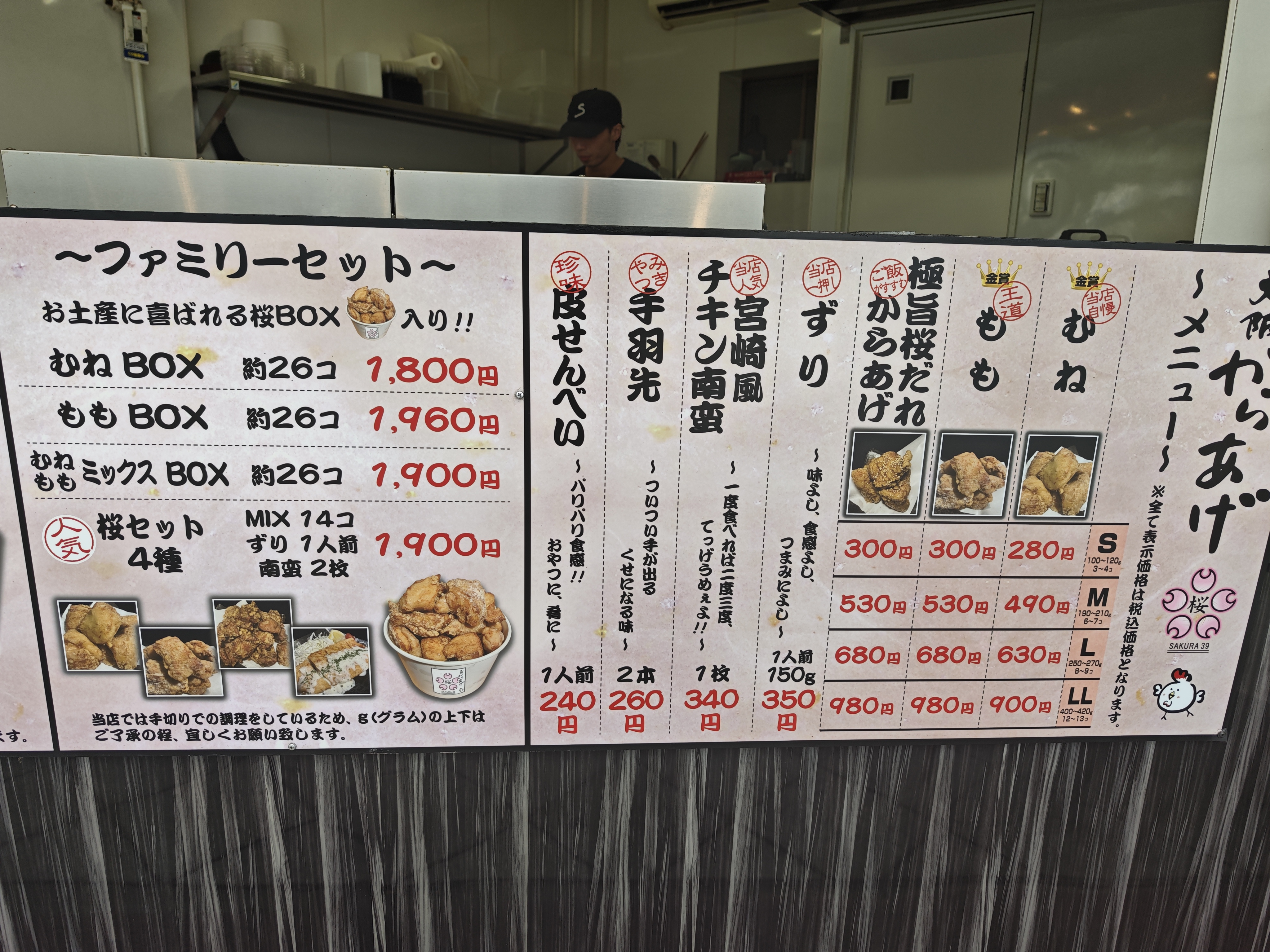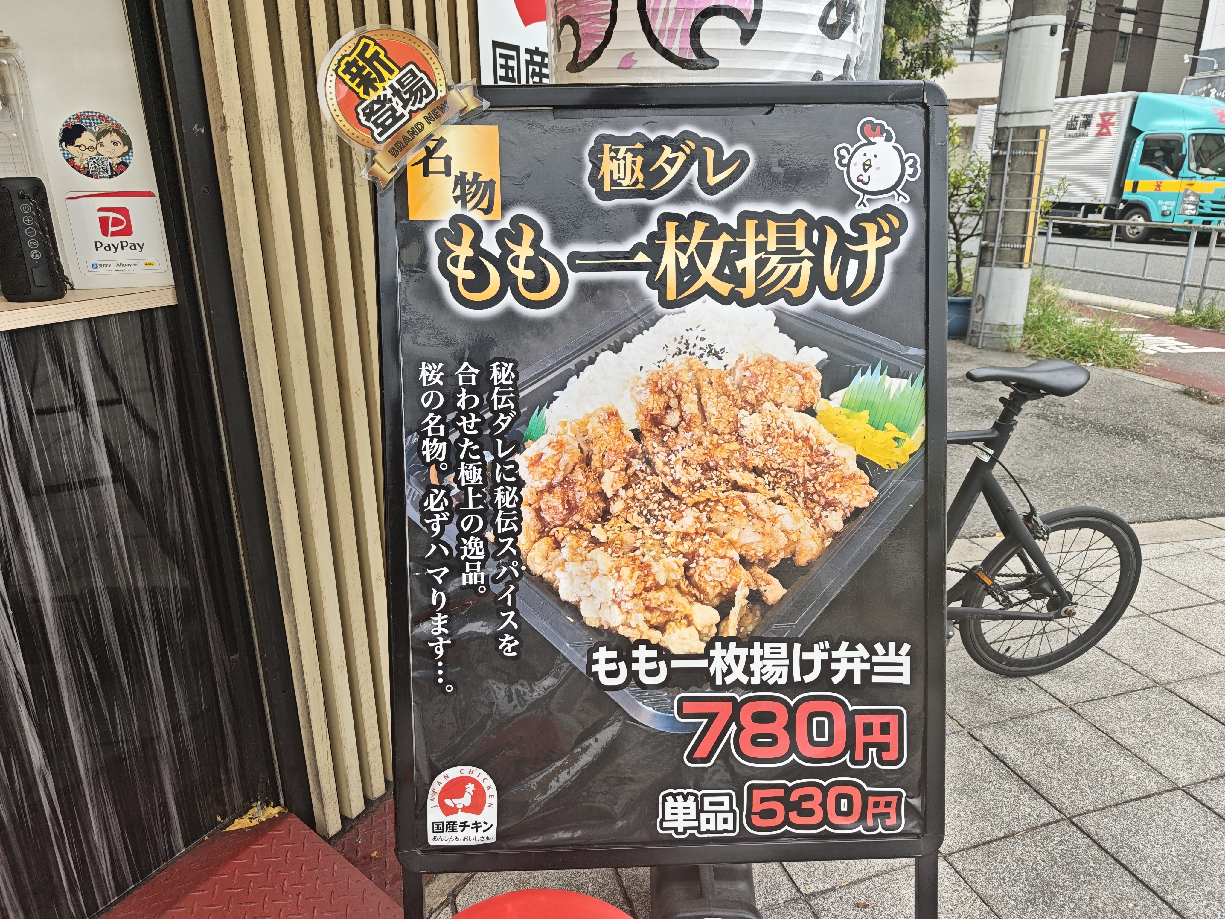 大阪からあげ桜の目立つ看板が目印。駅前の路面店なので立地も良く寄りやすいです。