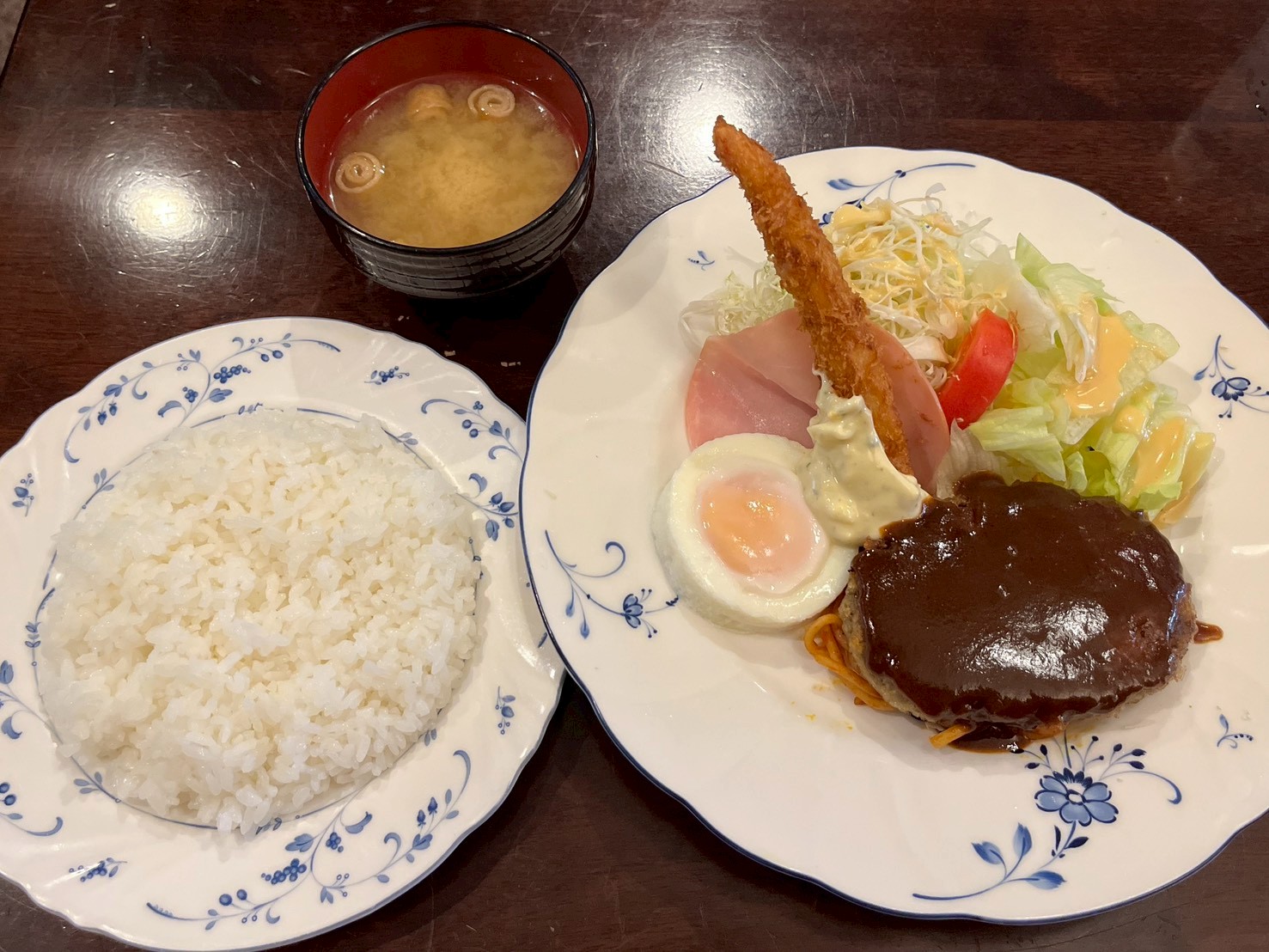 ハンバーグの上にたっぷりのった自家製デミグラスソースはとっても濃厚。深いコクの中に塩味もしっかり効いていて満足感があります。サラダも目玉焼きもお味噌汁も何を食べても「美味しい!」と幸せを感じられて箸が止まりません!