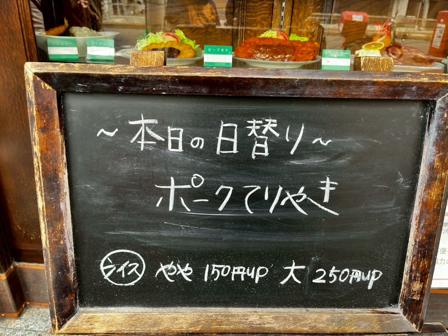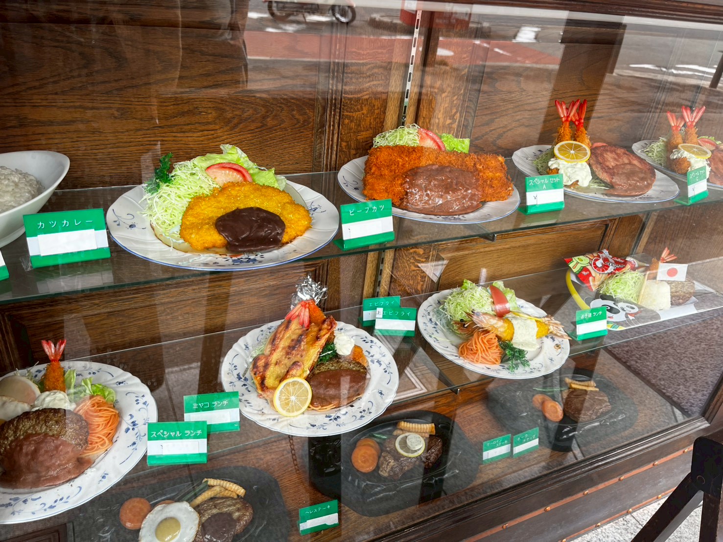 お子様ランチがあるので家族連れでの食事も楽しめそうです。ずらりと並んだ食品サンプル、眺めているだけで食欲がそそられます。