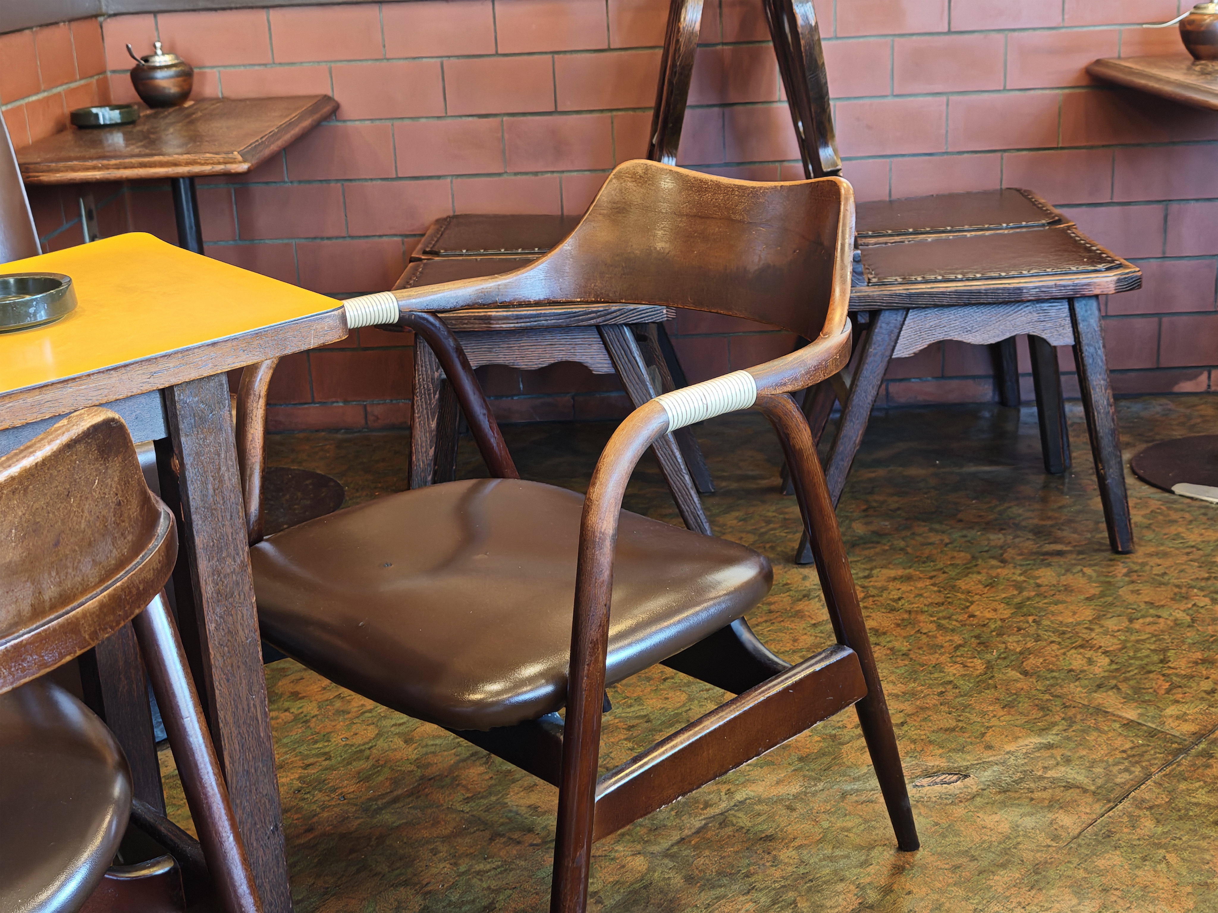 家具のレザーのヨレ感や木のハゲ具合が、今まで沢山のお客様に使われてきたのだろうなと歴史を感じさせてくれます。