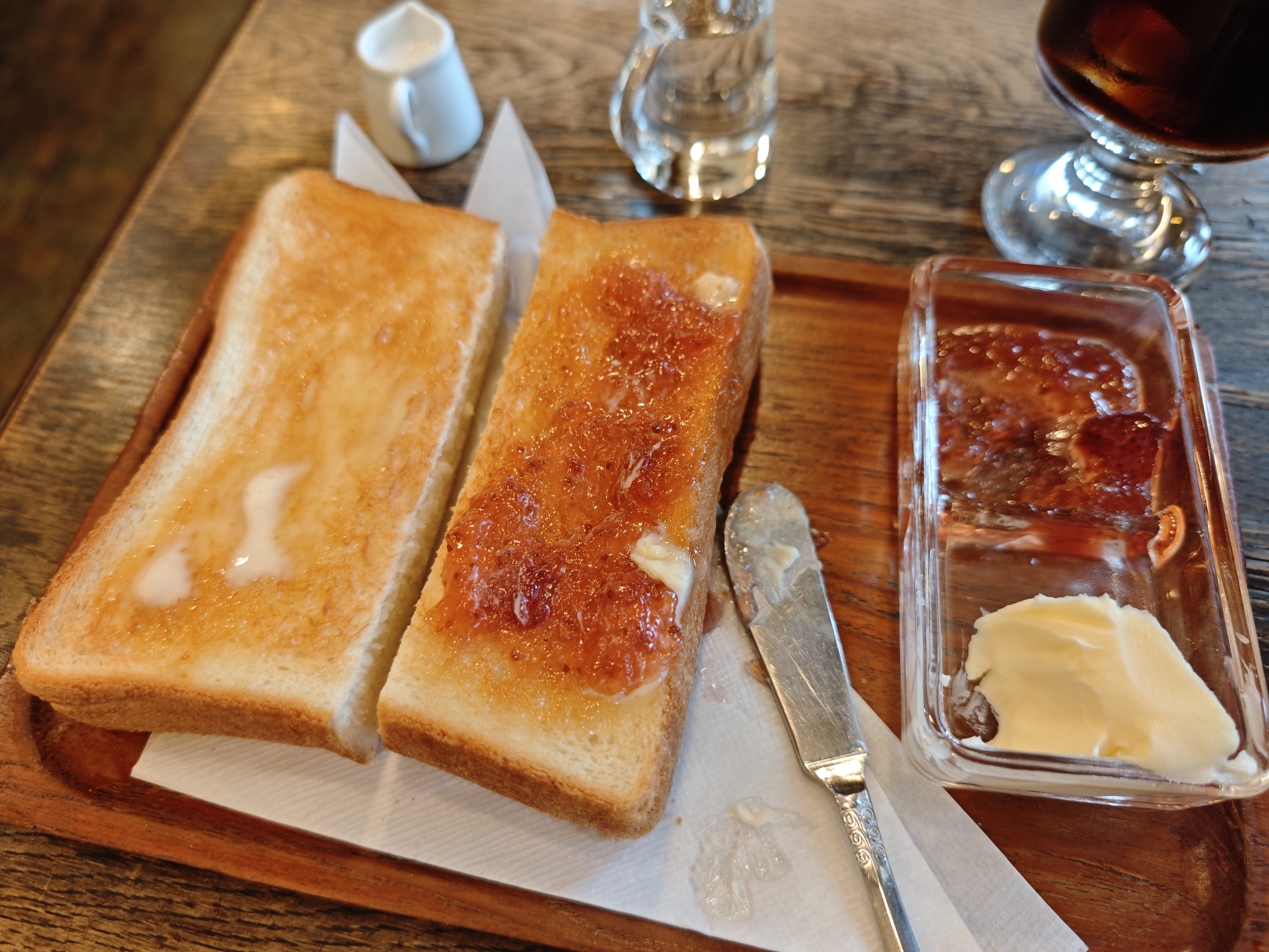 パンはさっくりとトーストされ、コーヒーはライトで飲みやすくどちらも美味しく頂きました。