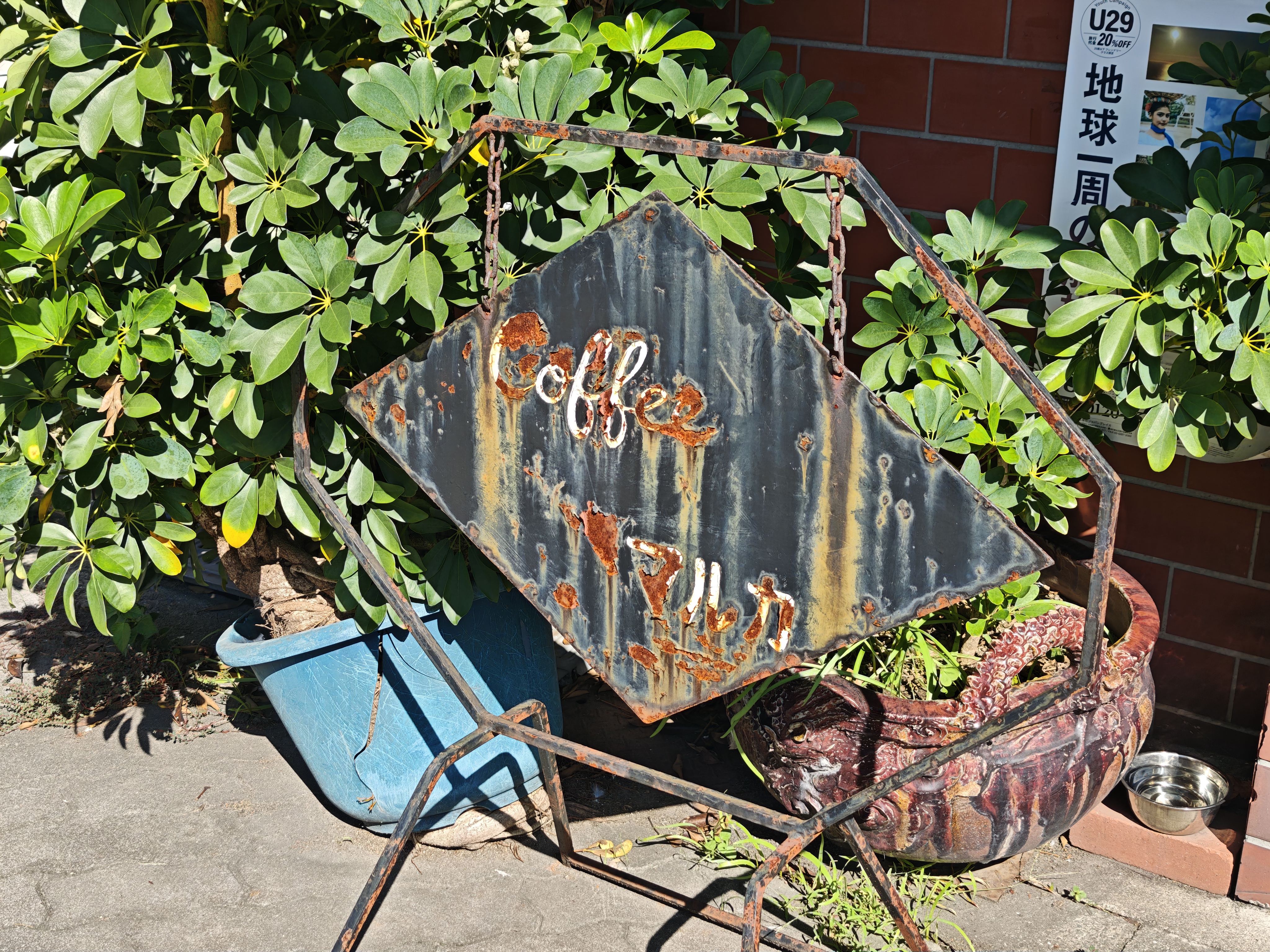 年季の入った置き看板。錆具合がとてもいい味を出しています。
