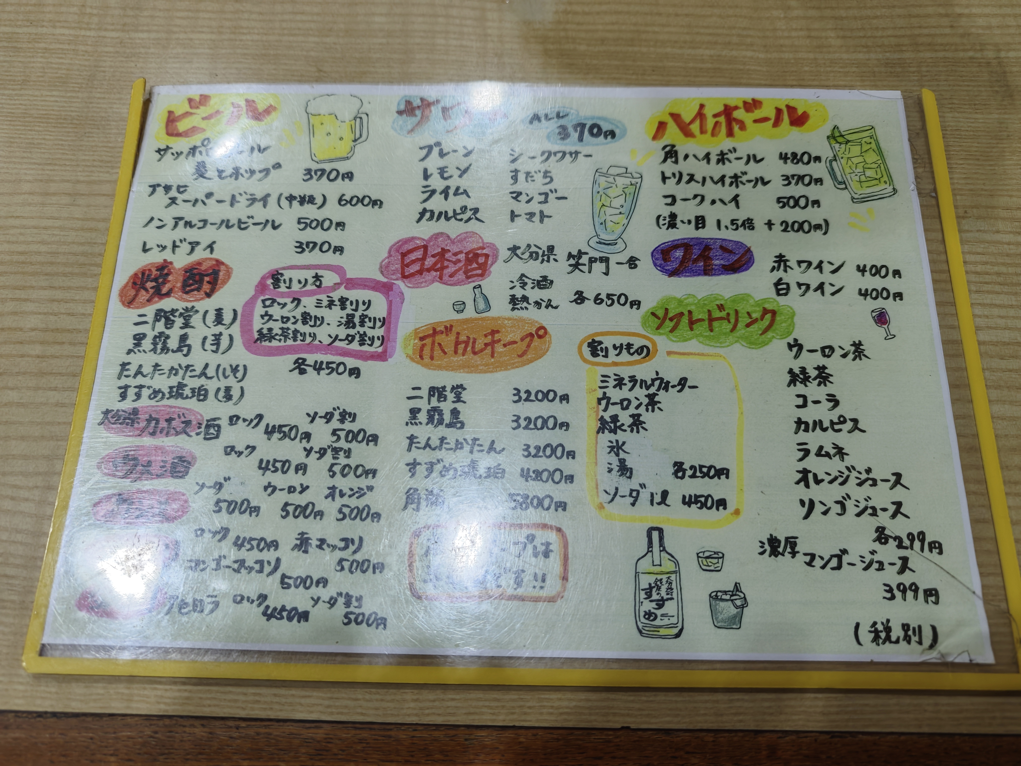 夜は居酒屋として豊富なメニューがありました。だんご汁以外にも美味しそうな料理が沢山ですね。