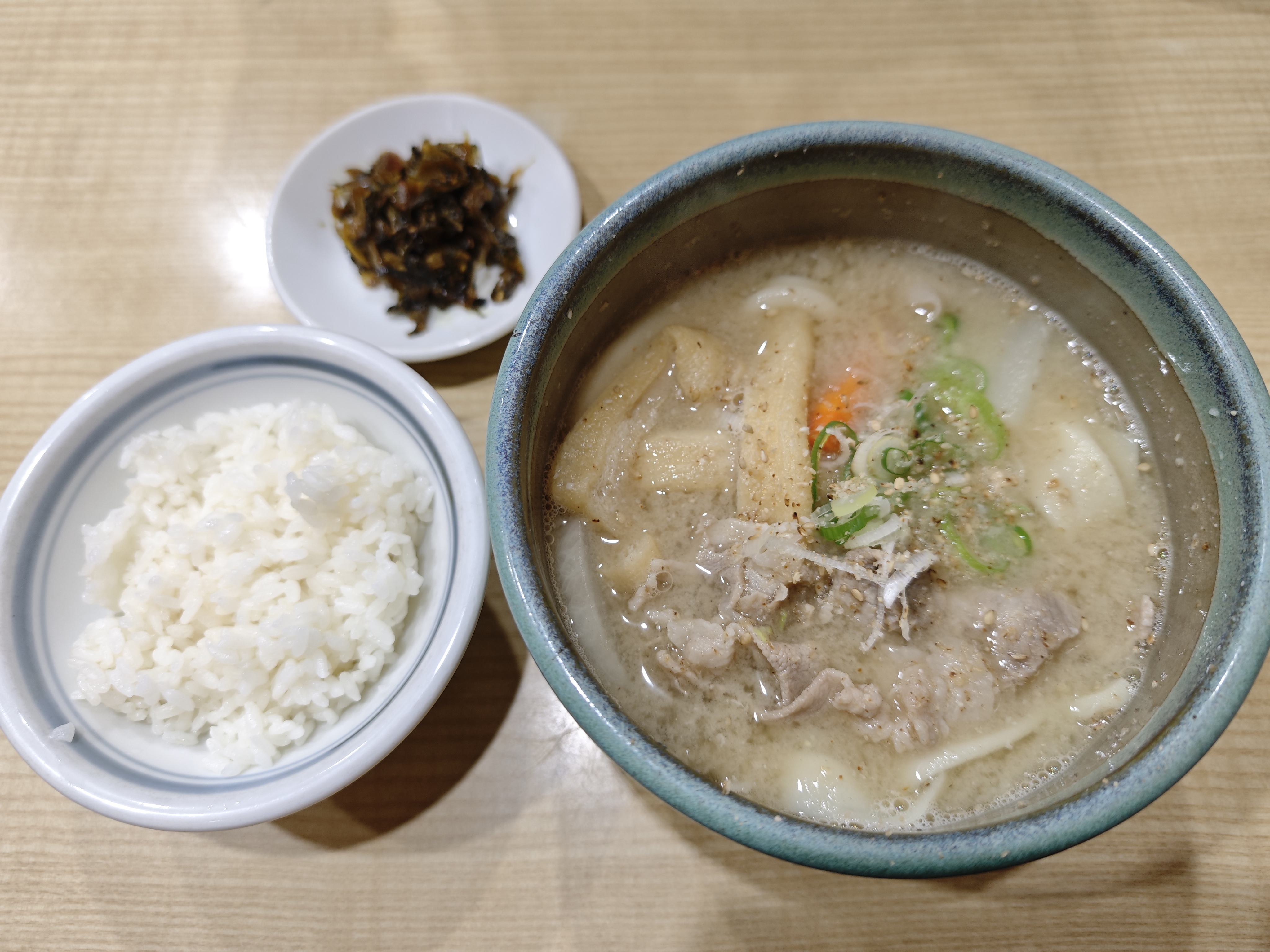 大根、白菜、ごぼう、人参、おあげ、ネギなど、沢山のお野菜が甘めの味噌で仕立てられた優しいお味は、ちょうど良い温かさの出汁で心も体もほっこりと。